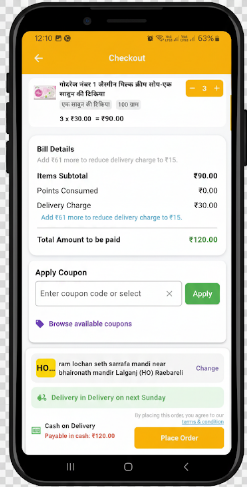 Confirm your delivery location, choose your preferred payment method (COD or Online), and place your order.