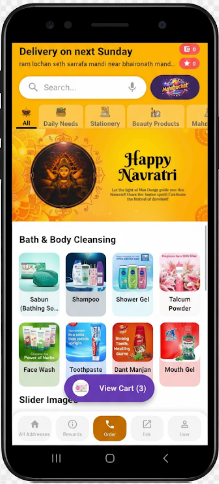 Install the **Naitik Store App**, browse through our categories (Grocery, Stationery, Beauty), and add your desired products to the cart.